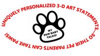 Uniquely personalized treasures which showcase what YOUR Paw Baby has to say. Leslie has the uncanny ability to read your Paw Baby’s expression in a photo you submit. Then, a lasting, custom-made, and one-of-a-kind 8”X10” Masterpiece of your favorite family member comes to life in eye-popping 3-D! Leslie can read the as-of-yet-unspoken thoughts of your favorite pet…be it a dog, cat, rabbit, horse, giraffe…any animal you hold dear…well…except for maybe a snake (they are always so negative…however, we are sure Leslie can coax a positive thought from the photo). The Art Statement is then encased in a clear covering. A wood easel stand is included, which now lovingly preserves a memory you can cherish…’fur’-ever! These also make great gifts for those who can’t wait to hear their own Paw Baby ‘talk’.